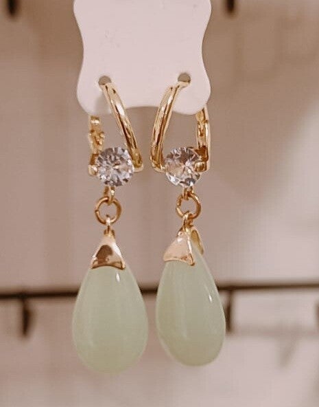 Les boucles Berde associent un strass étincelant à une goutte vert jade pâle pour un rendu délicat et féminin. Une pièce fantaisie raffinée, parfaite pour illuminer vos tenues avec douceur et modernité.